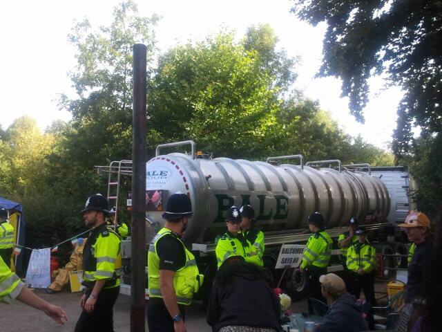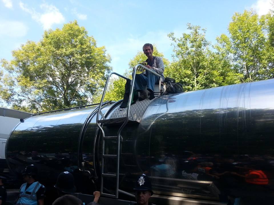 Update (14:45am): One protector locked on to fracking truck at the gate of Cuadrilla site in Balcombe.